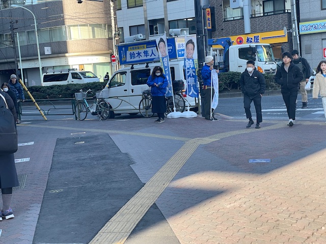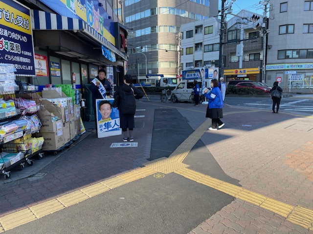 16時30分 鈴木隼人候補 本郷3丁目交差点での街頭演説会 お手伝い
