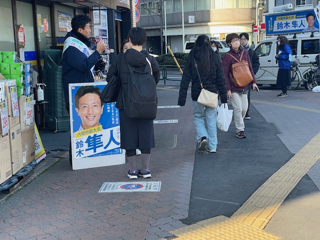 13時00分 鈴木隼人候補 自民党ビラ配り
