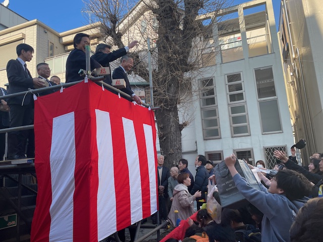 2月2日(月)■鈴木隼人候補 千石駅頭朝の挨拶、遊説、巣鴨駅南口で街頭演説、巣鴨大鳥神社の節分祭豆撒式、日朝友好新春の集い