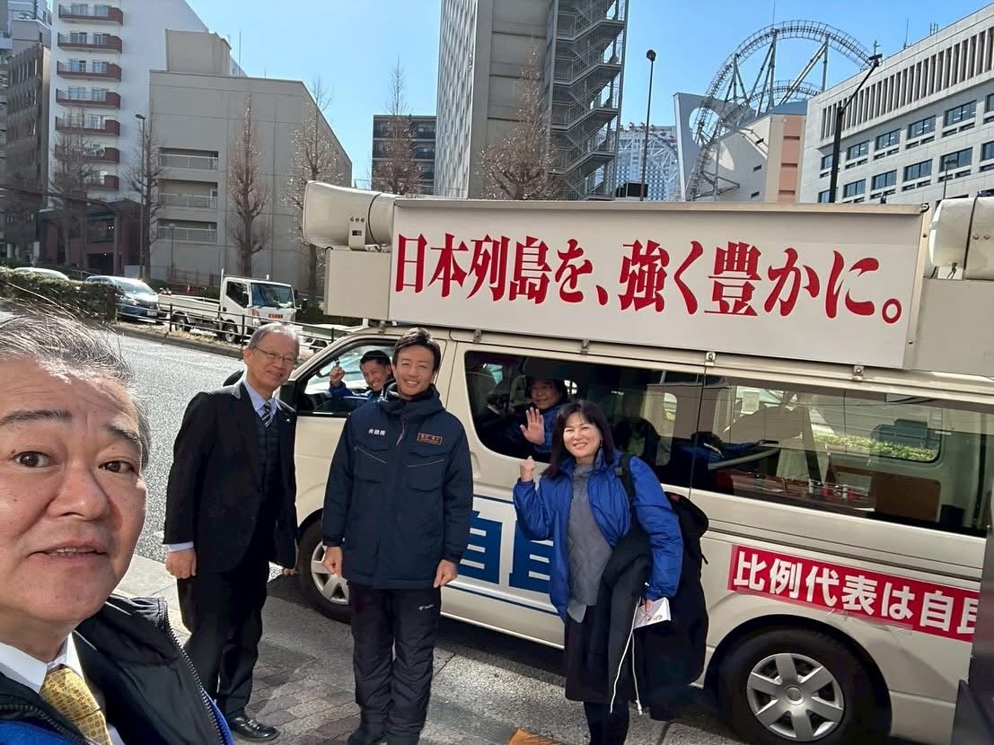 2月6日(金)■自民党の政策ビラ配布、8日の開票立会人説明会、街頭演説会、文京区保護司会の合同班会、自民党広報車のハヤブサで区内遊説