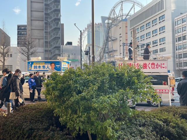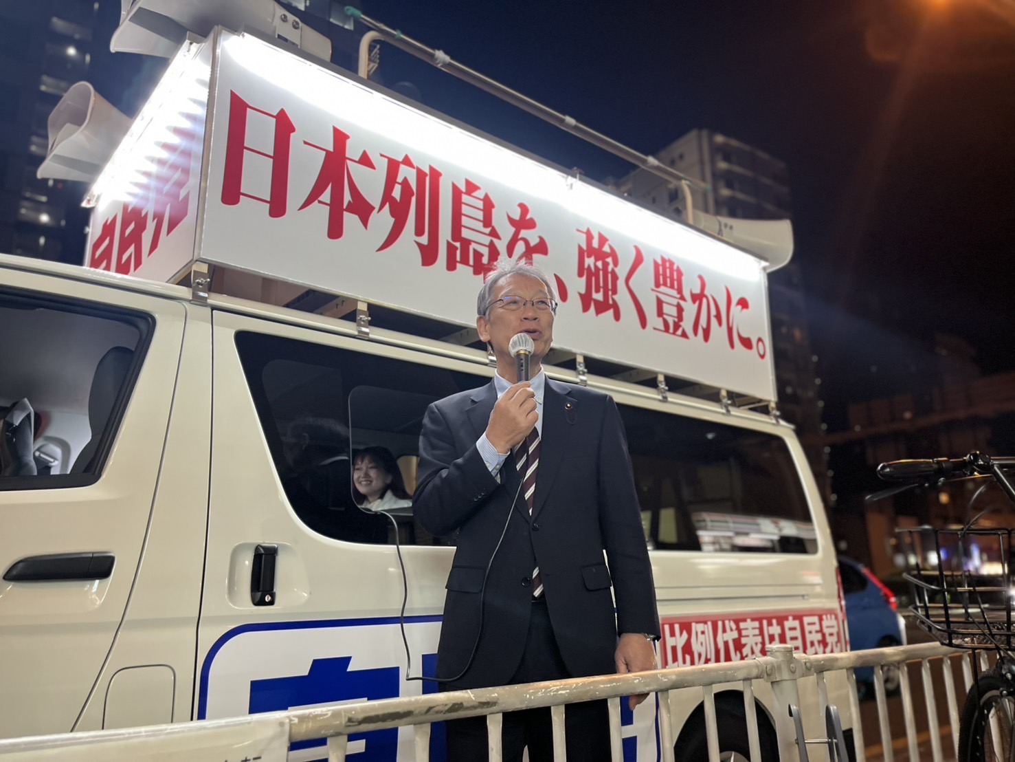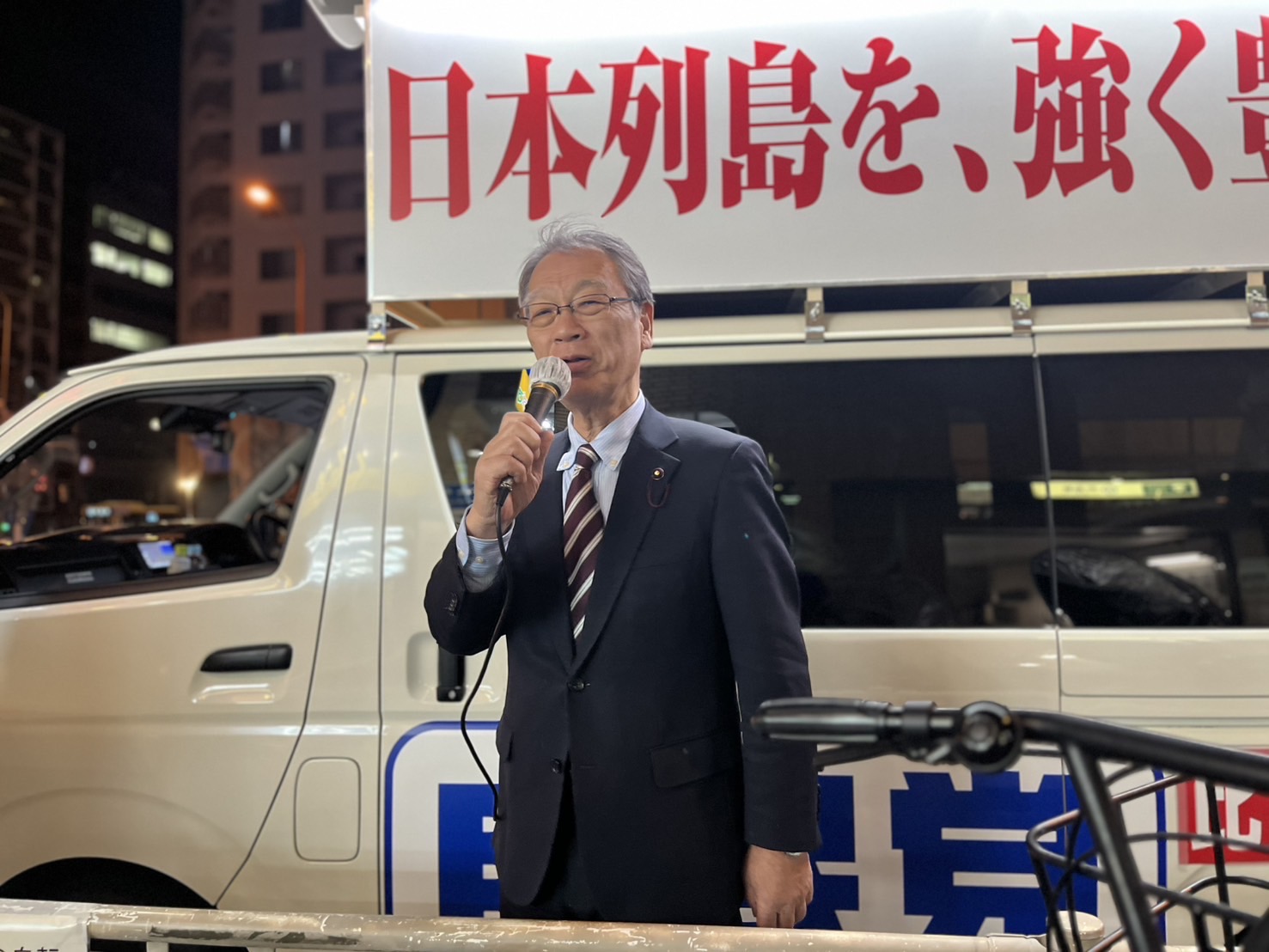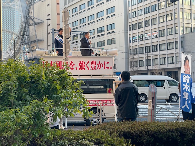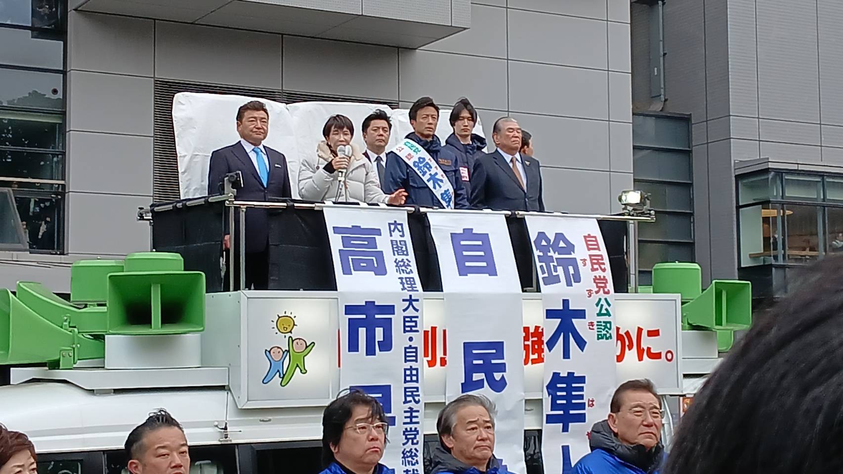 3時30分からの高市早苗総裁遊説の告知と鈴木隼人に対するお願いをさせてもらいました。