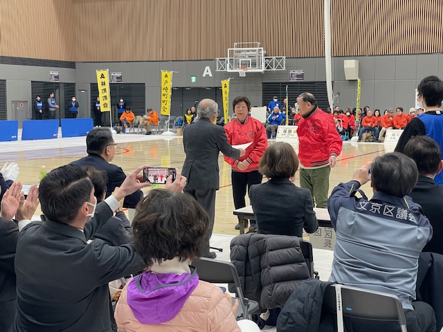 11町会が参加して開催されました。地震時の初動から救出救護、担架搬送、応急救護の一連を3人のチームで時間や正確性を争います。今回1位は大塚坂下北町会、2位には大塚4丁目協力会、3位は文京中央町会でした。また、連続参加20回の南戸崎町会が、特別賞を受賞されました。各町会の皆様 お疲れ様でした。