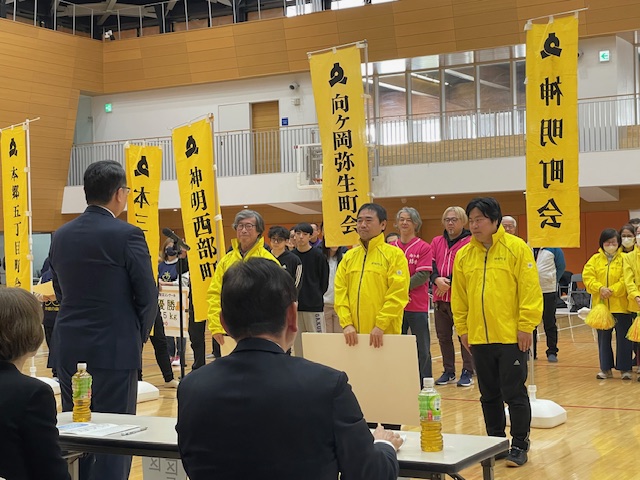 8つの町会・自治会が参加して、日頃の訓練の成果を発揮していました。結果、優勝は三組弥生会、準優勝は本郷五丁目町会、3位には神明町会となりました。選手の皆さんお疲れ様でした。
