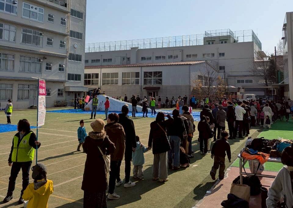 会場には暖かい日差しに誘われて、400人を超える参加者ですべり台には長い列が出来ていました。